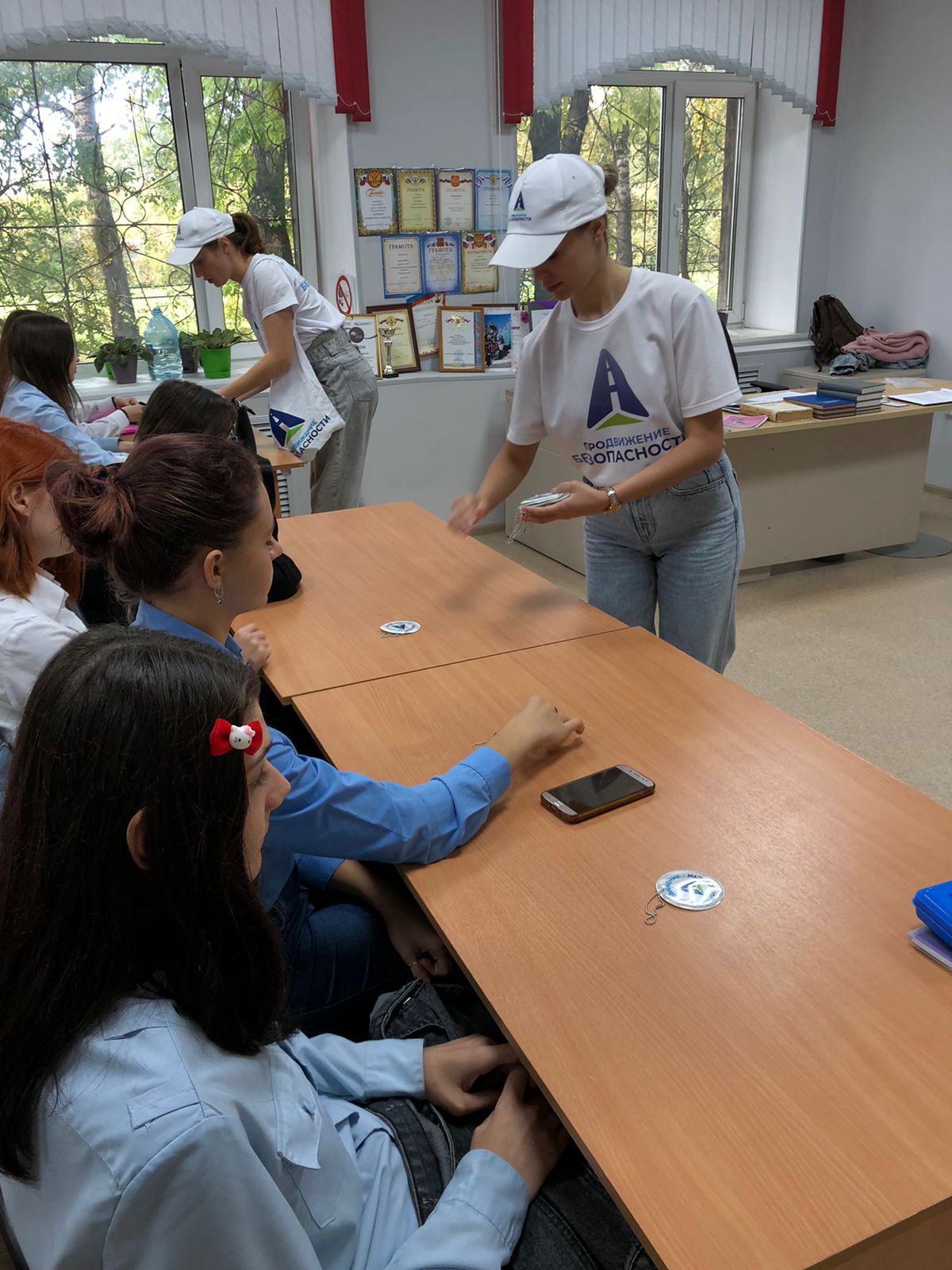 Инструкторы Социальной кампании "Продвижение без опасности" провели информационно-пропагандистское мероприятие для привлечения внимания студентов к проблемам, которые возникают при нарушении правил дорожного движения. Студенты посмотрели фильм, ответили на вопросы инструкторов и получили подарки - светоотражающие брелки.